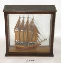Physical DescriptionA four-masted schooner ship model. The ship's hull and square mainsails are made of polished wood. The model is mounted within a wood and glass case.