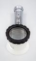 Physical DescriptionA "Flash-O-Lens" battery operated illuminated magnifying glass. It consists of a round magnifying glass held within a circular black and white plastic holder. The holder is attached to a chrome-plated brass handle into which a battery would be inserted. The end of the handle that is attached to the magnifier contains a small light bulb which would illuminate any object under the magnifying lens. The manufacturing information is marked on the top of magnifier: "FLASH-O-LENS" E.W. PIKE & CO. ELIZABETH, N.J. U.S.PAT.NOS. 1,784,168-1,814,540.