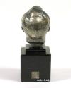 Physical DescriptionA small silver-colored front-facing metal head of Franklin D. Roosevelt on a cube-shaped black marble base. A silver plaque, inset into the front of the base, has a facsimile of FDR's initials in his handwriting: FDR. The artist's name is inscribed on the reverse of the head: JO · DAVIDSON · WASH · 1934 ©. The manufacturer's mark is etched into the reverse bottom of the sculpture: TX [stacked vertically] 2002. A small square silver plaque, set into the reverse of the base, has an inscription that reads: D·S·C / 2002 / XC.