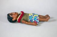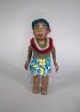 Physical DescriptionA Works Progress Administration (WPA) visual education doll of a Hawaiian male. Made of papier-mâché, cloth, and oilcloth, with painted features, the doll is wearing an olive green sleeveless top and a multi-colored sarong (lavalava). A white fabric tag sewn inside the sarong has the typed words “ORIGINAL HAWAII.” Around the doll’s neck are red and white leis, and behind his left ear is a red flower.