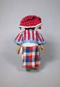 Physical DescriptionA Works Progress Administration (WPA) visual education doll of a Filipino female. Made of papier-mâché and cloth, with painted features, the doll is wearing a traditional baro’t saya outfit consisting of a red and blue striped blouse with intermingled stripes of multicolored flowers, a red, white, and blue checked long wrap skirt under which is a pair of pink shorts, and a white sash tied around her waist. A pair of white fabric tags sewn to the interior of skirt have the typed words "ORIGINAL" and "PHILIPPINE." Attached to the back of her head is a short, two-tiered red scarf with white embroidery and trim.