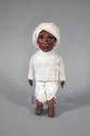 Physical DescriptionA Works Progress Administration (WPA) visual education doll of a Trinidadian male. Made of papier-mâché, cloth, and oilcloth, with painted features, the doll is wearing a white cotton kurta top and a white cotton dhoti bottom. A white fabric tag sewn to the interior of the kurta has the typed word "Trinidad." The word "Trinidad" is also written in pencil on his chest. On his head is a removable white cotton turban.