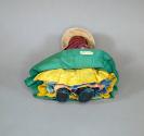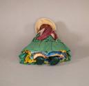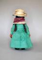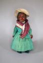 Physical DescriptionA Works Progress Administration (WPA) visual education doll of a Bolivian female. Made of papier-mâché and cloth, with painted features, the doll is wearing a green jacket and a matching green multilayered skirt (pollera) with petticoats in pink, blue, light blue/green, and yellow. A white fabric tag sewn to the interior of the dress has the typed words "Bolivia Original." Wrapped over her shoulders and across her chest is a rust-colored shawl (manta) with off-white, pink, and green accents. The doll is also outfitted with a wide brimmed natural-colored straw hat and green boots.