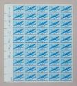 Physical DescriptionA full sheet (no. 22775) of fifty unused U.S. 1940 blue 30¢ Air Mail stamps (Scott C30) showing an image of a twin-motored transport plane. The left margin of the sheet has the original ink signatures of "Henry Morgenthau Jr." and "Franklin D. Roosevelt."