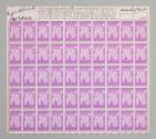 Physical Descriptiona) A full sheet (no. 22562) of fifty unused U.S. 1940 light violet 3¢ Pan American Union stamps (Scott 895) showing an image of Botticelli's, The Three Graces. The top margin of the sheet has the original ink signatures of "Franklin D. Roosevelt," "Roy M. North," and "Hector Davis Castro."
