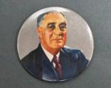 Physical DescriptionA round, full color pinback campaign picture button with a painted portrait of Franklin D. Roosevelt.