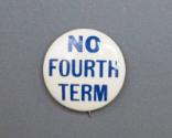 Physical DescriptionA round pinback campaign slogan button. Blue text on a white background reads: NO / FOURTH / TERM.
