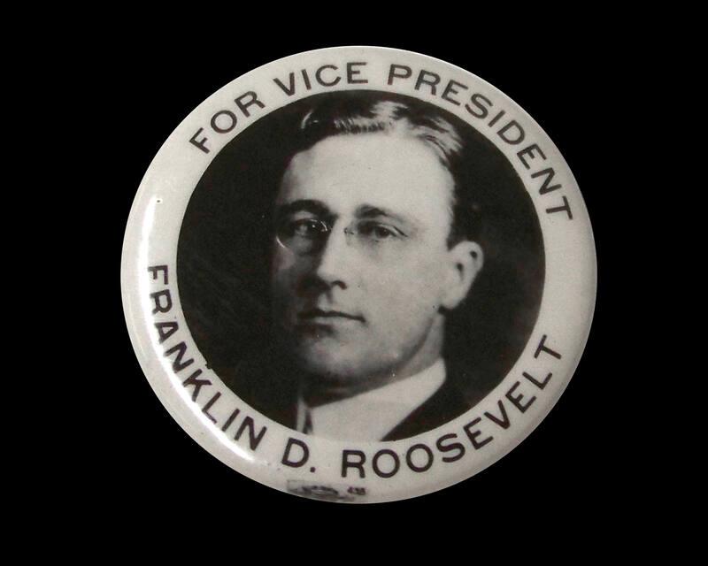 Historical NoteIn 1920, FDR was the Democratic Party’s candidate for Vice President of the United States on a ticket headed by Ohio Governor James M. Cox.Attached to the reverse of some of the buttons are three short lengths of ribbon in red, white, and blue that hang down below the buttons.
